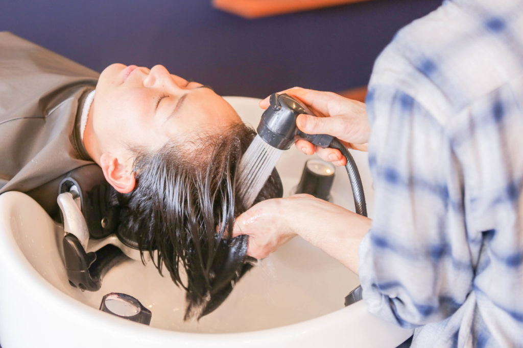 カウンセリング後、髪についたホコリや汚れを取り除くためにシャンプー台でお流しをいたします。 水分補給をすることでヘナの浸透力が高くなります。